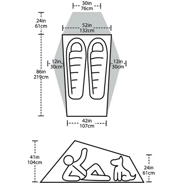 - Fly made of Sil-Nylon-Ripstop with 1200 mm waterproof PU coating