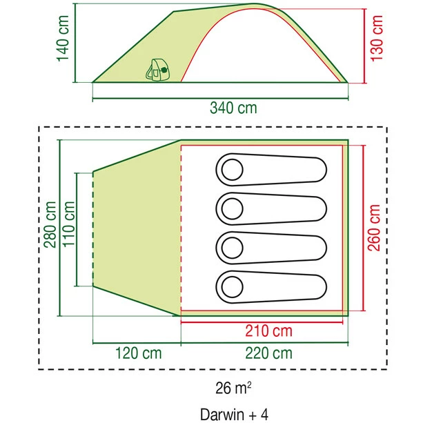 The Coleman Darwin 4 Plus is a quick to set up dome with extra storage space in the front. The floor in the storage area can be removed or inserted and has raised edges. The windows have covers, so you can choose between light incidence and privacy, according to your needs! With a pack size of 20x 58 cm and a weight of 6.2 kg, the tent is easy to transport. The material is made of robust polyester, with a water column of 3000 mm, so you are well protected against wind and rain.