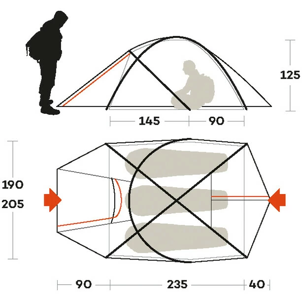 - Adjustable distance of the outer tent from the base for excellent guyline and for a larger or smaller air passage, depending on climate and weather conditions