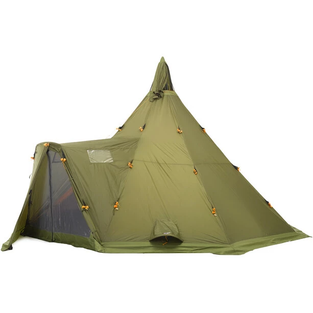 The entrance has been expanded to make entry and exit more comfortable, as well as to prevent the rain coming directly into the tent when one opens the entrance. In addition, it gives you the feeling of better space in the tent. The extension is equipped with two windows which ensure good light into the tent. The lavvu has a mosquito net in the entrance and several adjustable vents to ensure a good indoor climate.