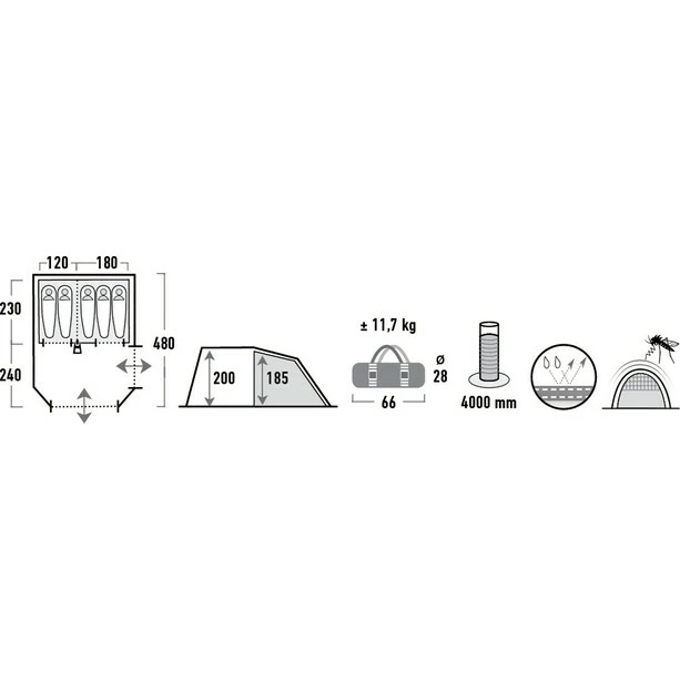 High Peak Paros 5 Tent deep grey/green(deep grey/green)