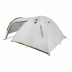 Double skin classical dome tent with rain stop door and wind stop side wings. Seam taped. Dual entry with mesh door. Permanent ventilation. Lamp holder and pockets. Easy to pitch. Ideal for weekend camping.