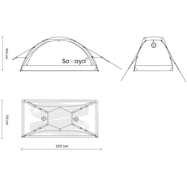 The Samaya2.0 tent is the smallest model in the ALPINE range. This tent, originally developed for 2 persons with a rectangular ground plan, is also the ideal equipment for those who are looking for a large single-seater tent with an unbelievable interior comfort.