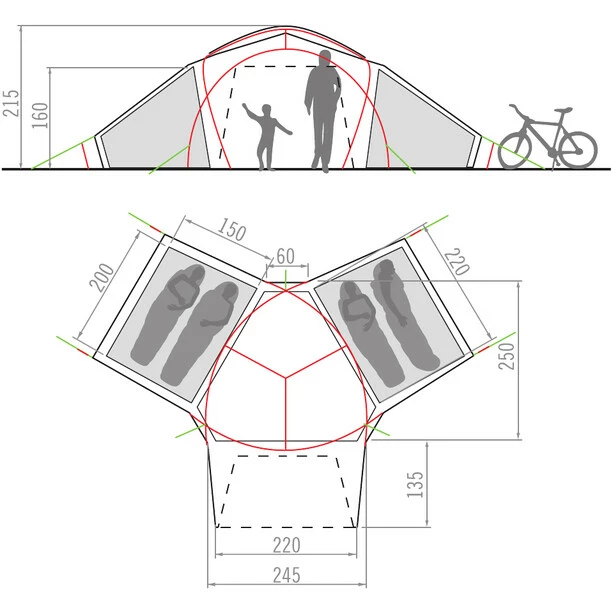 - Innovative tent construction with a large amount of space and excellent ventilation