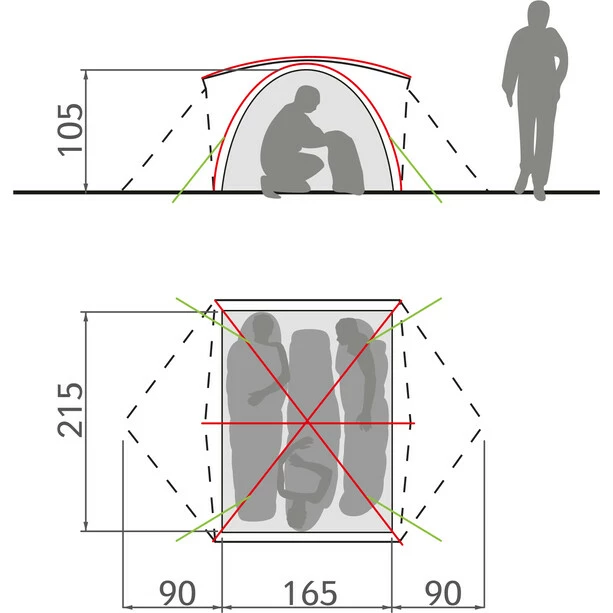 - Material outer tent: Polyester 75 D, polyurethane coated