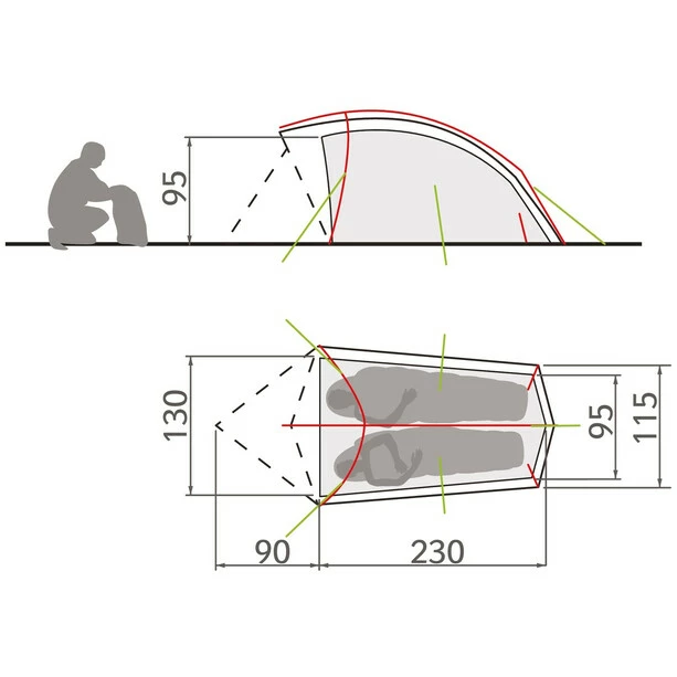 - optimised usage of the space because of square floor frame and additional pins in outer tent