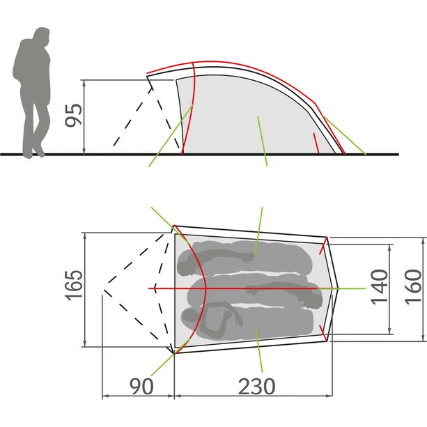 - Material outer tent: Polyester 75 D, polyurethane coated